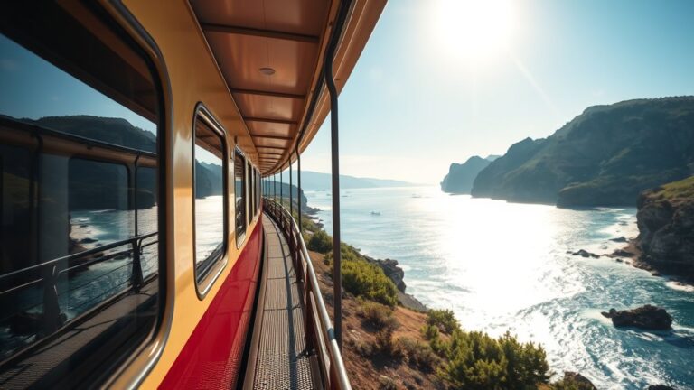 Eén van de grootste voordelen van reizen per trein is dat je echt kunt genieten van het landschap zonder je zorgen te maken over verkeer of navigatie. Elke bocht biedt een nieuw uitzicht: glooiende heuvels, uitgestrekte stranden en charmante dorpjes die voorbij glijden als scènes uit een film.